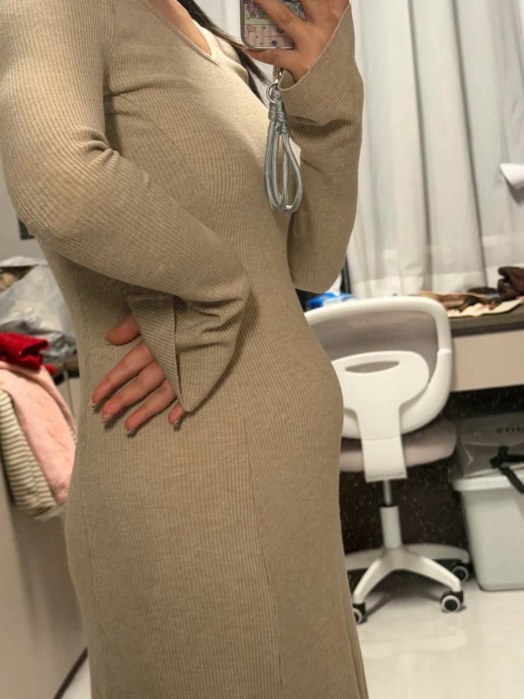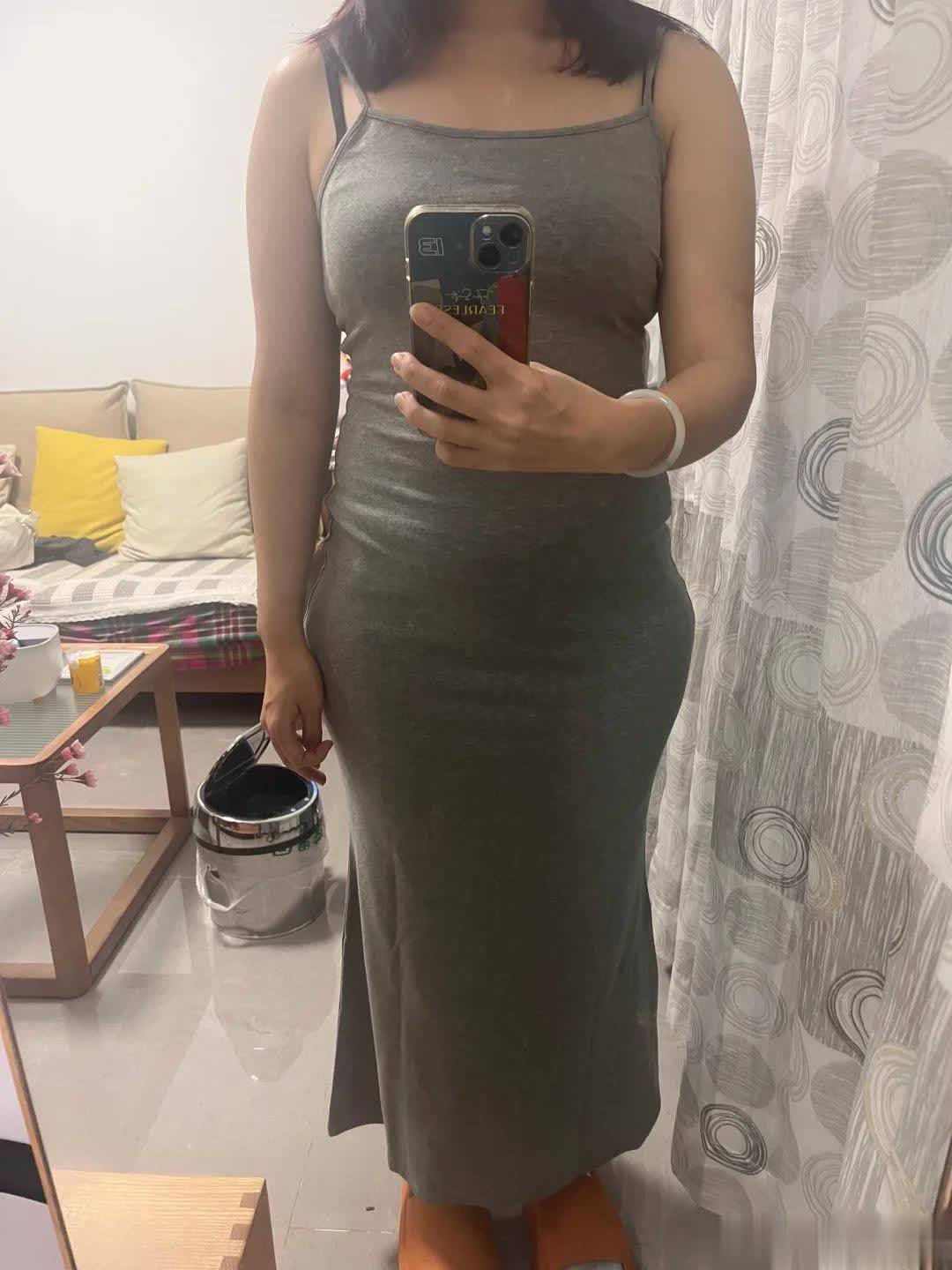 之前一直念念买一条紧身的裙子,但很难买到合适的,于是在网上看到一条莫代尔面料的紧身长裙。