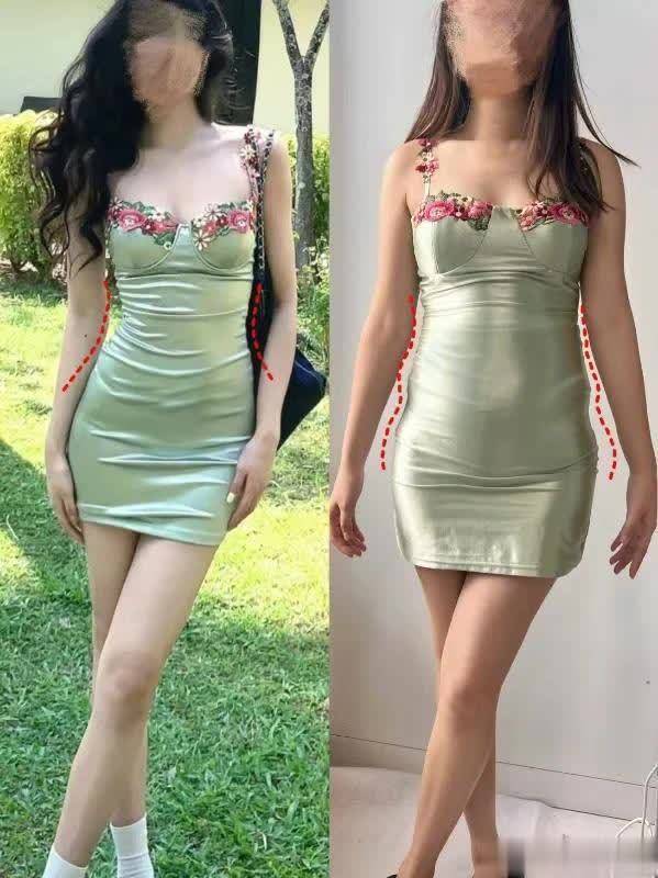 何况我发现这种长裙根柢不稳健梨形的姐妹,看似收腰策画,但会突显假胯宽,