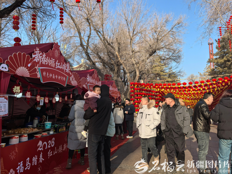 春节本领,乌鲁木皆红猴子园开设“新春纳福红山市集”。石榴云/新疆日报记者 于江艳摄